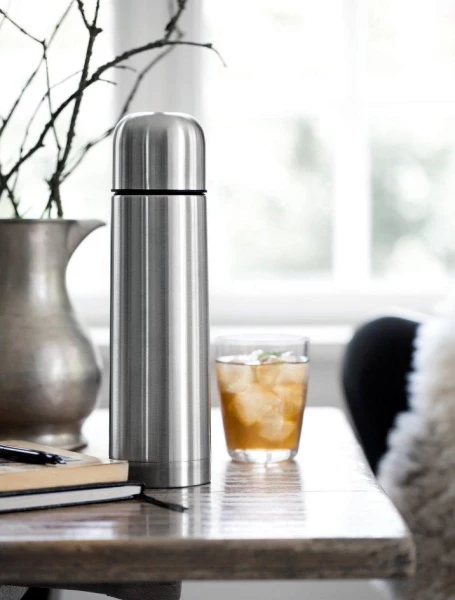 Diese Thermosflasche besteht aus einem doppelwandigen, vakuumgepumpten Edelstahlkörper für Heiß- und Kaltgetränke. Die Isolierflasche für komfortables Handling ist unzerbrechlich und absolut dicht.