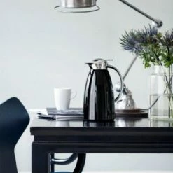 Mit dieser Thermoskanne Gusto wird guter Geschmack in Form gebracht. Dank des alfiDur Vakuum-Hartglaseinsatzes werden Kaffee und Tee bis zu 12 Stunden heiß gehalten. Über die praktische Einhandbedienung und dem intelligenten Air Control Belüftungssystem können die Getränke punktgenau und ohne Spritzer ausgegossen werden. Für eine unkomplizierte, hygienische Reinigung ist der Deckel ist leicht zerlegbar. Darüber hinaus kann sich die Isolierkanne auf jeder Tafel sehen lassen: Die wohltuend sanften Übergänge vom Ausgießer in den glänzenden Korpus und der große, verchromte Griff. Das ist ansprechendes Design in perfekter Qualität! Entwickelt in Deutschland.