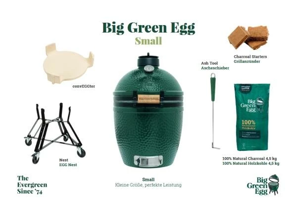 Big Green Egg Starterset Small. Für einen leichten Start ins Big Green Egg Universum. Das von BGE speziell für Beginner zusammengestellte Set mit allen wichtigen Basics.