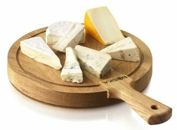 Boska Käsebrett Friends L guten Freunden und Bekannten schmackhafte Käsesorten zu servieren? Auf dem großen Käsebrett mit 30 cm Durchmesser findet sich genügend Platz, um vorzugsweise 5 Sorten Käse anzurichten. Auf diesem Käsebrett kommt jeder Käse zur Geltung! Das handliche Brett aus weißem Eichenholz wird durch einem stabilen Griff komplettiert.