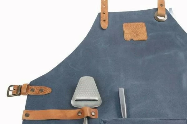Tragen Sie sie mit Stolz: die Mr. Smith Lederschürze Blau mit Tasche. Die Schürze besteht aus Spaltleder. Reines Handwerk, das viele Jahre hält. Sie haben die Schürze benutzt? Kurz mit einem feuchten Tuch abwischen und sie ist wieder einsatzbereit.