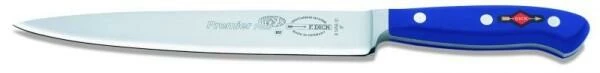 Dick Tranchiermesser aus der Serie Premier Plus in blau. Die glatte Schneide und die dünne Klinge lassen sich mühelos durch Fisch führen.