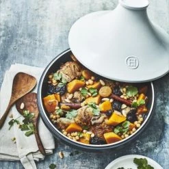 Emile Henry Tajine Delight in ardoise. Leichter als eine klassische Tajine und ideal zum sanften Schmoren und Braten, auf der Herdplatte (auch Induktion) oder im Ofen. Unter dem elegant geschwungenen spitzen Deckel können Dampf und Aromen optimal zirkulieren.