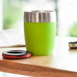 Emsa Isolier-Trinkbecher Travel Cup in limette. Der Isolierbecher mit der attraktiven Silikonummantelung und der trendigen Kaffeeprägung.