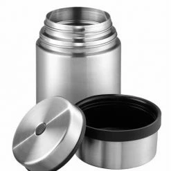 Perfekt, wenn man sie bereits zu Hause vorbereitet und in diesem doppelwandigen, Thermobehälter aus Edelstahl mitgenommen hat. Er fasst 1 L und hält Mahlzeiten über viele Stunden heiß oder kalt. Praktischerweise können Sie den Deckel auch als Schüssel verwenden. Der Druckablass erfolgt per Knopfdruck.