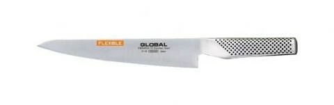 Global Yoshikin Flexibles Filetiermesser 21cm. Zum Auslösen von mittelgrossen Fischen um 600g wie Doraden, kleine Loup de Mer, Seezungen etc.