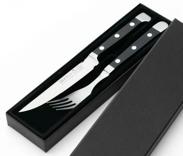 Steakmesser Alpha und 1 Güde Steakgabel Alpha im hochwertigen Geschenkkarton - Klingenlänge: 12 cm