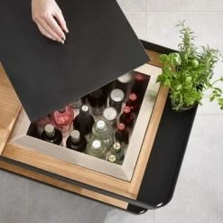 Der IceBoy besitzt zudem eine ausziehbare Arbeitsplatte, die zum Zubereiten und Servieren der Getränke genutzt werden kann. Wird diese geschlossen, kann der IceBoy als klassischer Servierwagen genutzt werden. Die Rückseite kann zur Aufbewahrung von Gläsern dienen, bietet aber auch genug Platz für Flaschen, Häppchen und Kräutertöpfe. Für einen sicheren Stand sorgen die Bremsen an zwei der vier Räder.