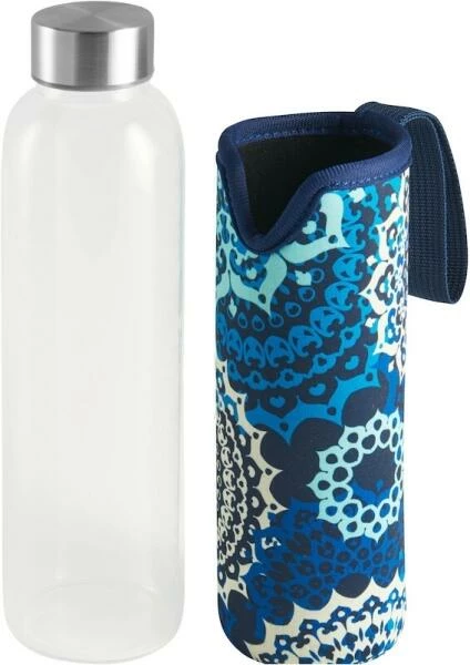 Lurch Glasflasche mit Iso-Hülle, blue moon. Robuste Isolierflasche aus extrem temperaturbeständigem Borosilikatglas, 500ml.