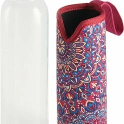 Lurch Glasflasche mit Iso-Hülle, mandala red. Robuste Isolierflasche aus extrem temperaturbeständigem Borosilikatglas, 500ml.