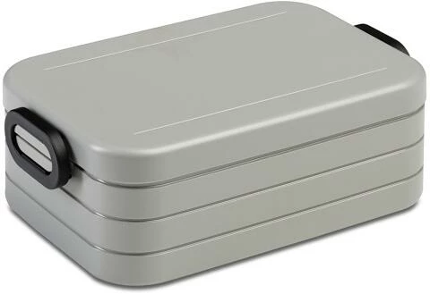 Lunchbox Take a Break midi in der Farbe Silber (silberfarben). Diese praktische silberne Lunchbox von Mepal ist geeignet für maximal 4 Butterbrote und hat einen Dichtungsgummi, der den Inhalt immer frisch hält, und einen Trennsteg, mit dem die Box einfach unterteilt werden kann.