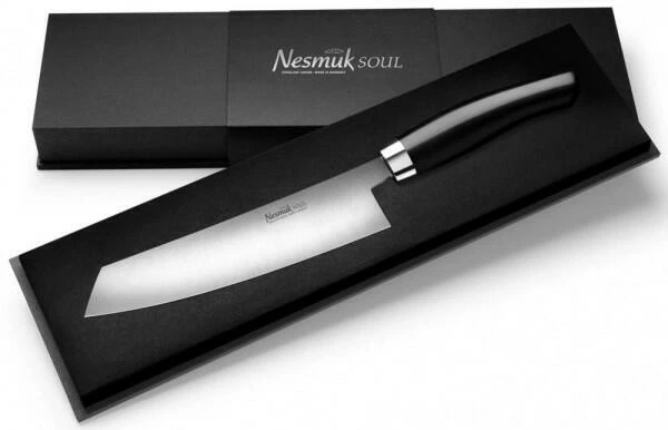 Nesmuk verbindet traditionsreiche Handwerkkunst mit modernster Technologie. Das Unternehmen aus Solingen entwickelt und fertigt Messer in höchstmöglicher Schärfe und setzt dabei auf Stahlsorten, Edel-Materialien und Technologien, die in der Schneidwarenindustrie noch nie zuvor verwendet worden sind – und genau das macht den Unterschied! Alle Messer werden unter dem Anspruch gefertigt, in ihrer Schärfe nicht überboten werden zu können und in jedem Anwendungsbereich den feinstmöglichen Schnitt zu ermöglichen. Die Produkte entstehen in mühevoller, mehrjähriger Detail-Arbeit. Alle Produkte sind mit praktischen und dekorativen Alleinstellungsmerkmalen ausgestattet und genießen den Ruf, jeweils die Besten in ihrer Kategorie zu sein! Sie sind zeitlos, funktional und von höchster Qualität. Es macht keinen Unterschied, ob das Messer links- und rechtshändig geführt wird. Zusätzlich bietet Nesmuk eine Vielzahl an praktischen Zubehör zum Schärfen, Aufbewahren, Pflege sowie Arbeiten wie z.B. Streichriemen, Messerhalter und Schneidbretter an.