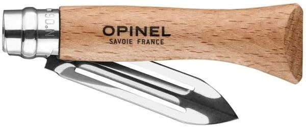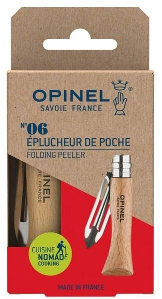 Opinel Schälmesser No. 06. Noch besser geht nicht: Opinel zeigt, wie gut sich ein Schälmesser klappen lässt. Das Opinel Schälmesser No 06 ist ein praktischer Begleiter für Unterwegs, da sich die Klinge, wie bei normalen Taschenmessern von Opinel, einklappen lässt. Die doppelte Klinge aus rostfreiem Sandvik-Stahl wird im geöffneten Zustand durch das Drehen des Virobloc Rings zuverlässig gesichert. Der aus einem Stück Buchenholz gefertigte Griff wird durch eine Speziallackierung vor Feuchtigkeit geschützt.