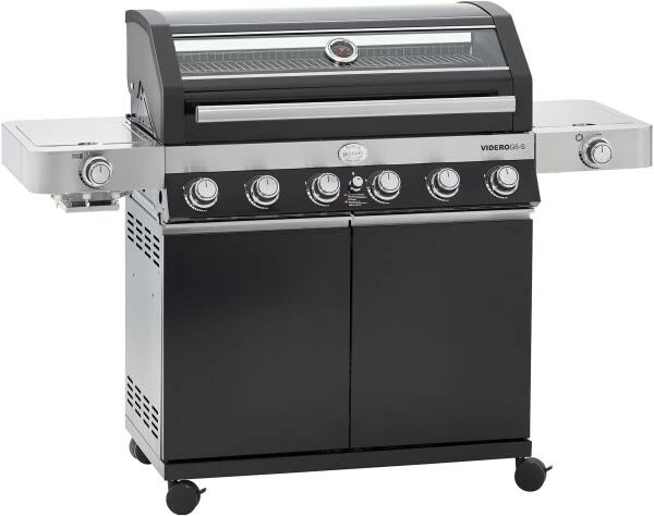 Rösle Gasgrill BBQ-Station VIDERO G6-S Vario+ in schwarz. Gasbetriebener VIDERO G6-S Vario+ BBQ-Grill mit 6 Hauptbrennern, komfortabler Haupt-Grillfläche, Warmhalterost, Seitenbrenner, Primezone im Seitentisch, beleuchteten Drehknöpfen, Deckelthermometer u.v.m.