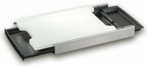 Schneidebrett in Kunststoff, 46x30x7cm. Die Schneidbox ist ein Alleskönner. Sie schneiden, portionieren, trennen den Abfall vom Schnittgut und wenn Sie lecker gekocht haben, dann stellen Sie die Box einfach auf die praktische Wandhalterung.
