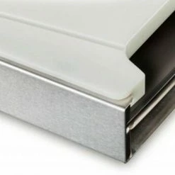 Die Schneidbox ist qualitativ hochwertig: Das Schneidebrett ist dreilagig gearbeitet. Ein Verzug des Brettes bei normalem Gebrauch ist ausgeschlossen. Die Einrastfeder im Schneidebrett ist aus Feder-Edelstahl und zweifach verschraubt. Der Rahmen besteht aus 1mm Edelstahl 1,4301. Auf der Unterseite sind 4 Rutschstopper angebracht. Die Führungsschienen und die 4 Schubladen bestehen aus hochwertigem, Spülmaschinen tauglichen ABS Kunststoff.