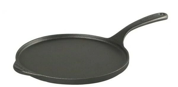 Pfannkuchenpfanne mit Gusseisengriff. Die Gusseisenpfanne von