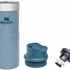 Mit der Slim Line Version des TRIGGER-ACTION TRAVEL MUG führt Stanley eine überarbeitete Version der einhändig bedienbaren Becher ein. Durch das neue, schlankere Design liegt der Becher noch angenehmer in der Hand und passt in alle gängige PKW-Getränkehalter. Das Drücken der großen und sehr leichtgängigen Taste zum Aktivieren der Trinköffnung mit einer Hand macht Trinken – on the go – zum Vergnügen. Der Trinkbecher in Hammertone Ice aus rostfreiem 18/8-Edelstahl mit Vakuumisolierung besitzt ein Fassungsvermögen von 354 ml und hält Getränke bis zu 5 Stunden heiß oder 6 Stunden gekühlt. Der TRIGGER-ACTION TRAVEL MUG ist komplett spülmaschinenfest und auslaufsicher. BPA-frei.