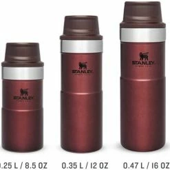 Mit der Slim Line Version des TRIGGER-ACTION TRAVEL MUG führt Stanley eine überarbeitete Version der einhändig bedienbaren Becher ein. Durch das neue, schlankere Design liegt der Becher noch angenehmer in der Hand und passt in alle gängige PKW-Getränkehalter. Das Drücken der großen und sehr leichtgängigen Taste zum Aktivieren der Trinköffnung mit einer Hand macht Trinken – on the go – zum Vergnügen. Der rote Trinkbecher aus rostfreiem 18/8-Edelstahl mit Vakuumisolierung besitzt ein Fassungsvermögen von 354 ml und hält Getränke bis zu 5 Stunden heiß oder 6 Stunden gekühlt. Der TRIGGER-ACTION TRAVEL MUG ist komplett spülmaschinenfest und auslaufsicher. BPA-frei.