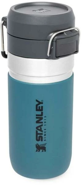 Ob für die Outdoor-Tour, den Sport oder einfach On The Road, die Stanley QUICK-FLIP WATER BOTTLE ist der ideale Begleiter gegen den Durst. Die auslaufsichere Flasche ist mit einem innovativen, zweistufigen Sicherheitsverschluss ausgestattet. Beim Transport wird der Verschluss gegen unbeabsichtigtes Öffnen von einem Edelstahlbügel fixiert. Wird dieser gelöst und der Push-Button Knopf gedrückt, flippt der Deckel federunterstützt auf. Die Trinkflasche aus rostfreiem 18/8-Edelstahl mit Vakuumisolierung besitzt ein Fassungsvermögen von 473 ml und hält Getränke bis zu 5 Stunden heiß oder 7 Stunden gekühlt. Die Flasche passt in gängige PKW-Getränkehalter und ist mit einem beweglichen Bügel zum Anhängen an den Rucksack oder Tragegriff ausgestattet. Alle Teile können in der Spülmaschine gereinigt werden. BPA-frei.