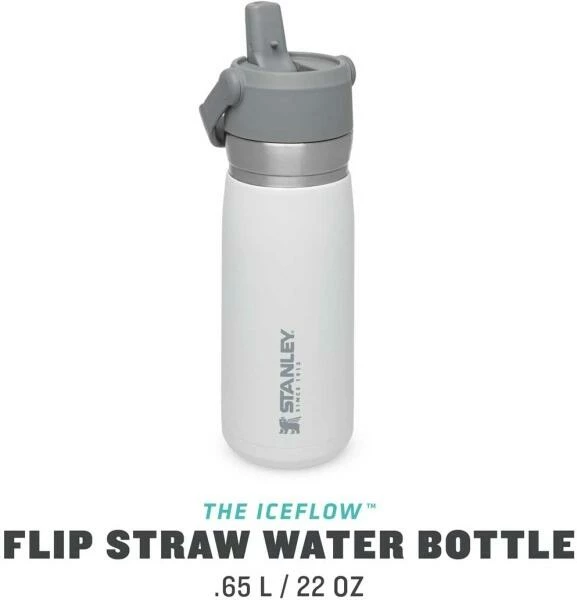 Die Stanley ICEFLOW FLIP STRAW WATER BOTTLE ist die perfekte Wahl für kalte Getränke beim Sport, in der Natur oder einfach beim Unterwegs sein. Das ausklappbare Mundstück – gleichzeitig Verschluss der Flasche – ist im inneren mit einem Kunststoff-Trinkhalm ausgestattet, wodurch die Flasche beim Trinken nicht gekippt werden muss. Zum einfachen Transportieren ist der Deckel mit einem praktischen, beweglichen Tragegriff ausgestattet. Die Trinkflasche aus rostfreiem 18/8-Edelstahl mit Vakuumisolierung besitzt ein Fassungsvermögen von 650 ml und hält Getränke bis zu 12 Stunden gekühlt. Die ICEFLOW FLIP STRAW WATER BOTTLE ist komplett spülmaschinenfest und auslaufsicher. BPA-frei.