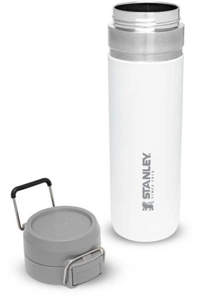 Ob für die Outdoor-Tour, den Sport oder einfach On The Road, die Stanley QUICK-FLIP WATER BOTTLE ist der ideale Begleiter gegen den Durst. Die auslaufsichere Flasche ist mit einem innovativen, zweistufigen Sicherheitsverschluss ausgestattet. Beim Transport wird der Verschluss gegen unbeabsichtigtes Öffnen von einem Edelstahlbügel fixiert. Wird dieser gelöst und der Push-Button Knopf gedrückt, flippt der Deckel federunterstützt auf. Die Trinkflasche aus rostfreiem 18/8-Edelstahl mit Vakuumisolierung besitzt ein Fassungsvermögen von 709 ml und hält Getränke bis zu 8 Stunden heiß oder 12 Stunden gekühlt. Die Flasche passt in gängige PKW-Getränkehalter und ist mit einem beweglichen Bügel zum Anhängen an den Rucksack oder Tragegriff ausgestattet. Alle Teile können in der Spülmaschine gereinigt werden. BPA-frei.