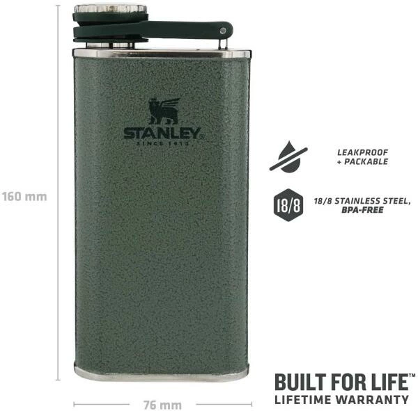 ROBUST UND SICHER: Der Stanley Edelstahl Flachmann ist “built to last”: hergestellt aus hochwertigem, rostfreien 18/8 Edelstahl, der robust, leicht und 100% lebensmittelecht ist. Die Materialien sind frei von BPA, so dass der Inhalt sicher konsumiert werden kann.