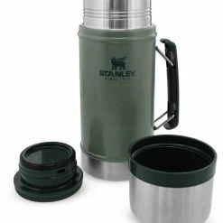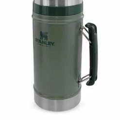 Der praktische Stanley CLASSIC FOOD CONTAINER passt in jeden Wander-Rucksack. Durch die große Öffnung mit 7 cm Durchmesser lassen sich sowohl kalte als auch warme Speisen bequem einfüllen. Auch die Reinigung des Containers geht leicht von der Hand. Der doppelwandige Vakuum-Container ist mit einer schützenden, grünen Hammerschlaglackierung versehen. Die Vakuum-Isolation hält den Inhalt bis zu 20 Stunden heiß oder 24 Stunden kalt. Der Deckel kann als Gefäß verwendet werden. Das Fassungsvermögen beträgt 0,94 Liter. Die Teile sind BPA frei und spülmaschinenfest.