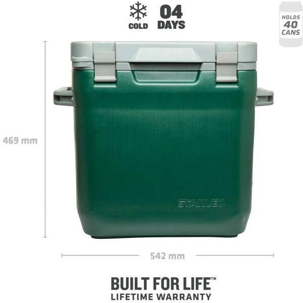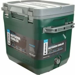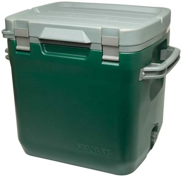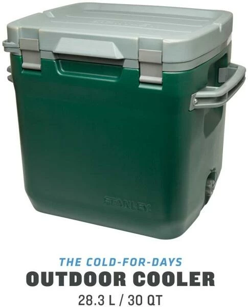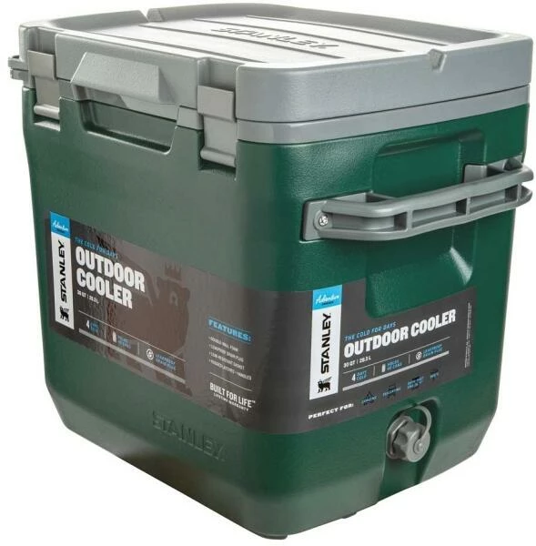 Der große Stanley ADVENTURE OUTDOOR COOLER überzeugt mit einer doppelwandigen Schaum-Isolation und hält den Inhalt bis zu 4 Tage lang kalt. Die große Variante mit 28,3 Litern Fassungsvermögen ist auch für große 2l-Flaschen geeignet. Besonders stabilen Verschlüsse sorgen, zusammen mit einer Silikondichtung dafür, dass nichts ausläuft. Große Tragegriffe erleichtern den Transport. Der “Cooler” ist sehr robust und kann auch bequem als Sitz benutzt werden. Die Box besitzt einen auslaufsicheren Ablasshahn.
