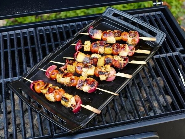 Mit der Plancha aus Gusseisen grillen Sie bei sehr hohen Temperaturen und auf der gesamten Bratfläche. Mit der gusseisernen Plancha lassen sich besonders kleine Köstlichkeiten zubereiten oder Grillgut, das sonst gerne auf dem Rost zwischen den Stäben hindurchfällt, wie etwa Gemüse oder Meeresfrüchte. Aber auch für Fleisch und Fisch ist die Platte ideal, denn ebenso typisch spanisch ist es, das Grillgut kräftig mit Säften oder Marinaden zu übergießen. So entstehen ganz besondere Geschmacksaromen, die auch anspruchsvolle Gaumen erfreuen.