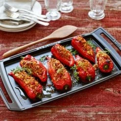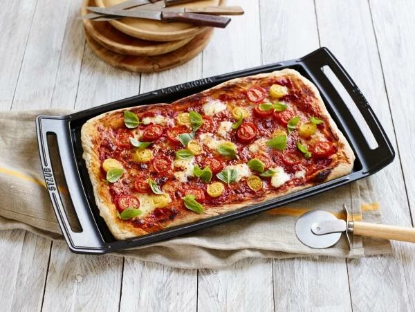 Die Plancha ermöglicht eine fettarme und unkomplizierte Zubereitung von Speisen. Besonders praktisch ist dabei die große Fläche, auf der es sich übrigens nicht nur grillen lässt. Auch Speisen wie Kaiserschmarren oder Pizza lassen sich auf der Platte zeitsparend für mehrere Personen zubereiten. Mit ihrer Größe von 47 x 25 cm bietet die Plancha von Staub zudem ausreichend Platz für das gemeinsame Essen mit der Familie oder mit Gästen. Nach der Zubereitung der Speisen lassen sich diese auch wunderbar am Tisch servieren.