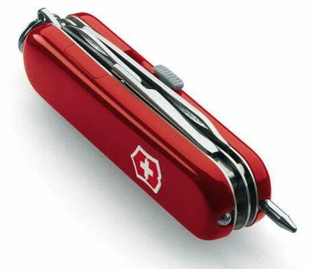 Klein und elegant, begleitet Sie dieses Taschenmesser von Victorinox durch den Alltag. Praktisch: Der kleine Schraubenzieher, mit dem sich zum Beispiel ein lockerer Brillenbügel wieder festziehen lässt.