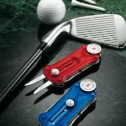 - 10 Funktionen: 1. Repair-Tool, 2. Ballmarker, 3. Locher mit, 4. – Rillenreiniger, 5. – Kapselheber, 6. – Nagelfeile, 7. Klinge, 8. Pinzette, 9. Zahnstocher, 10. Schere