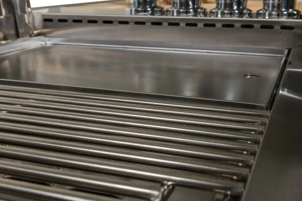 Der Gasgrill bietet zwei Grillbereiche: Zum einen den klassischen Grillrost und zum anderen ein Teppanyaki mit flacher Oberfläche aus Edelstahl. So lassen sich zeitgleich knusprige Steaks und knackiges Gemüse zubereiten. Dank der vier Brenner mit je 3,5 kWh verfügt der GazzBoy zusätzlich über vier separat einstellbare Temperaturbereiche.