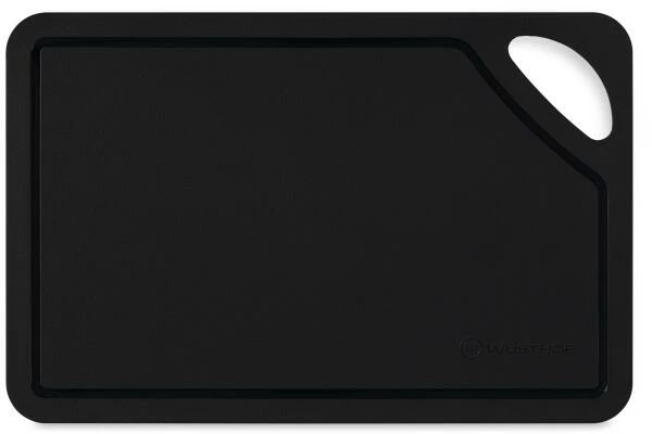 Wüsthof Schneidunterlage in schwarz. Praktisches Schneidbrett aus Kunststoff mit Saftrille.
