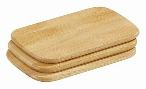 Frühstücksbrett aus Gummibaum, 3er-Set. Gummibaum zeichnet sich durch die besonders aufwendige Verarbeitung, die hohe Härte sowie die extreme Belastbarkeit aus.